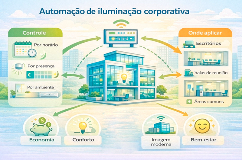 A iluminação é uma das maiores linhas de gasto de energia em prédios corporativos. Automatizar o controle de luz transforma esse custo em alavanca de eficiência, conforto e imagem moderna. A seguir, um guia direto para decidir e implementar.